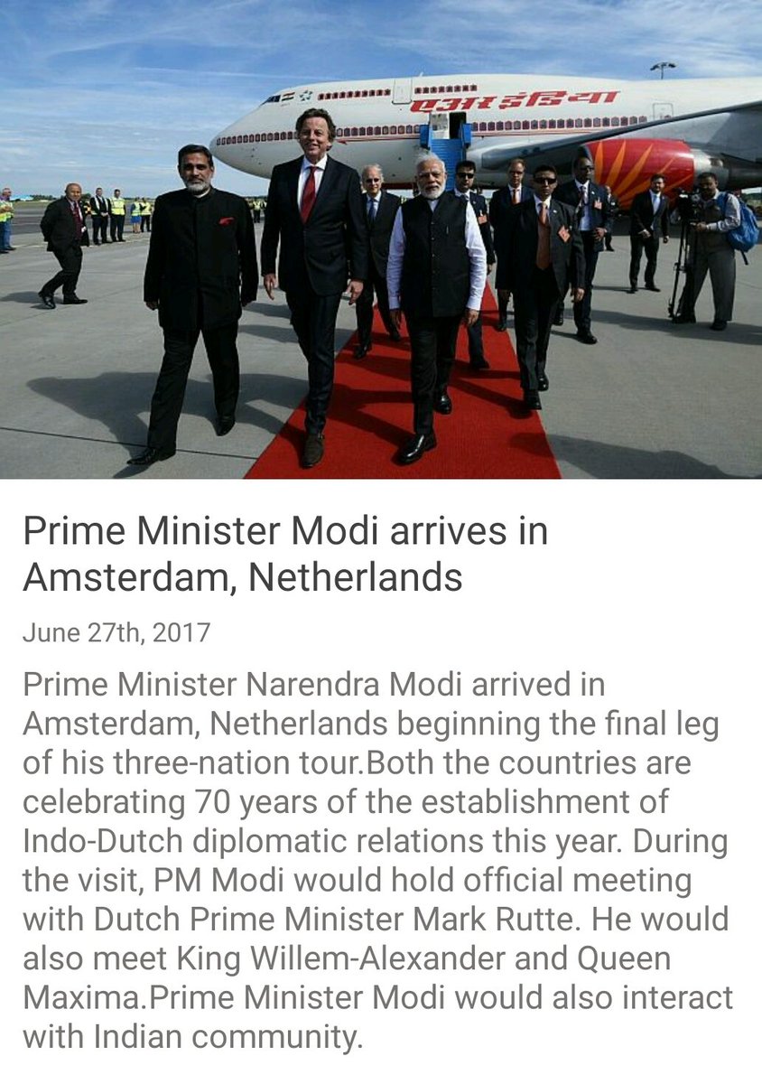 Prime Minister Modi arrives in Amsterdam, Netherlands http://nm-4.com/0y24 via NMApppic.twitter.com/t1vXygr6nH