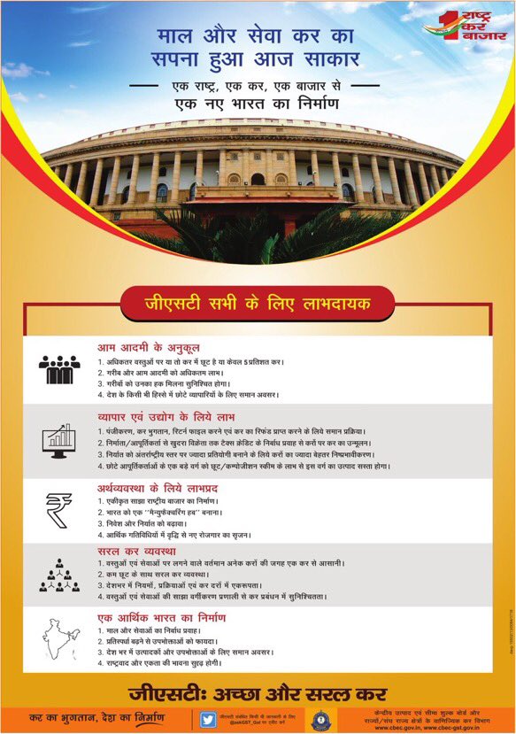 #GSTforMSME माल और सेवा कर का सपना हूआ आज साकार I एक राष्ट्र , एक कर ,एक बाज़ार से एक नए भारत का निर्माण I जीएसटी:अच्छा और सरल करpic.twitter.com/Pkx8oLCtWT