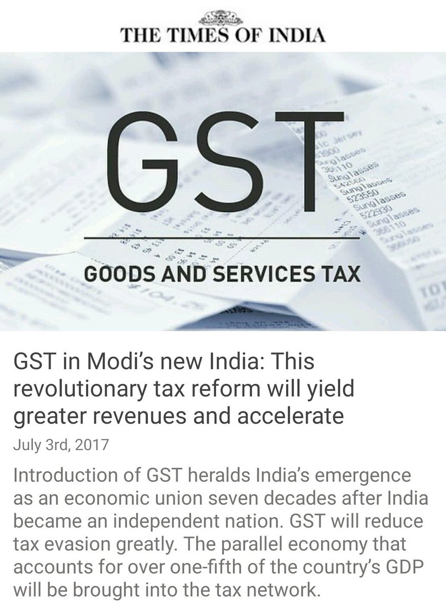 GST in Modi’s new India: This revolutionary tax reform will yield greater revenues and accelerate economic growth via NMApppic.twitter.com/ggP6aLFCfM