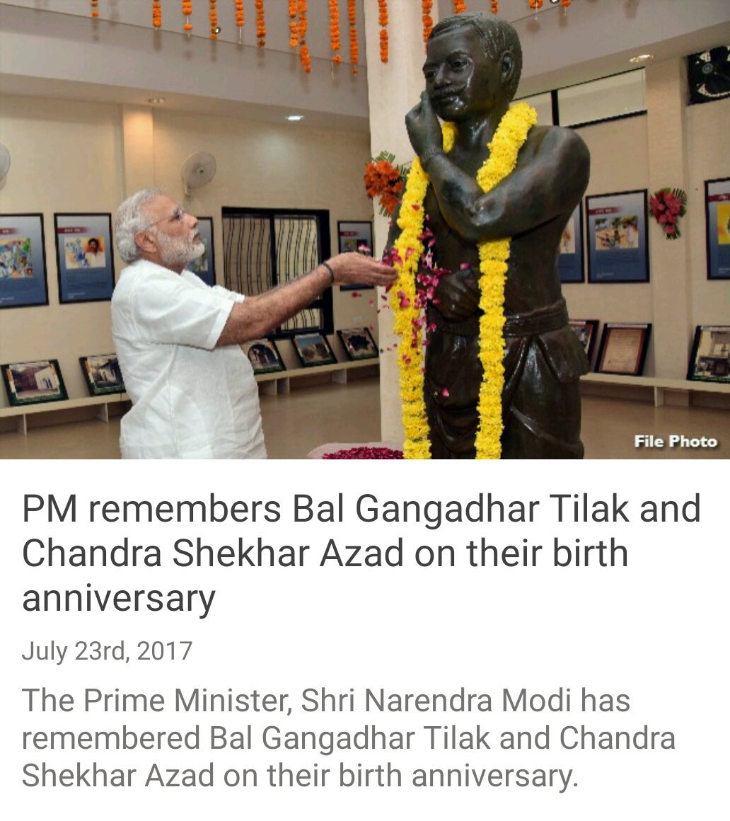 PM remembers Bal Gangadhar Tilak and Chandra Shekhar Azad on their birth anniversary http://nm-4.com/yv64 via NMApppic.twitter.com/Pqo6hiqPf5