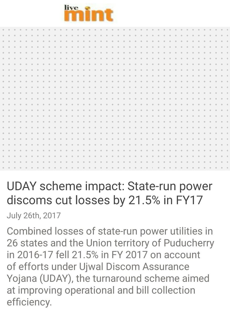 UDAY scheme impact: State-run power discoms cut losses by 21.5% in FY17 http://www.livemint.com/Industry/K3vFtw9b6RiNTCzxDJwseP/Staterun-discoms-cut-losses-by-215-in-FY17.html … via NMApppic.twitter.com/dmiQarQ0WO