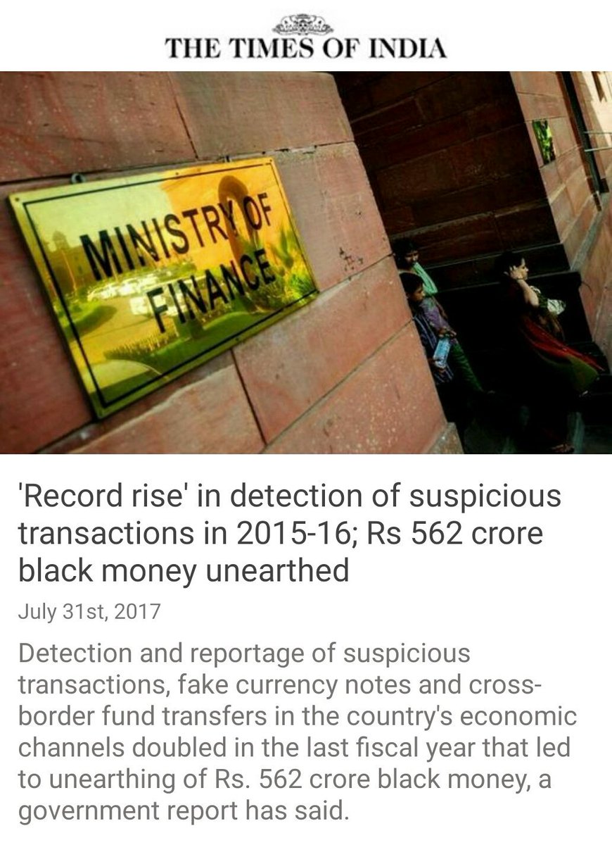 'Record rise' in detection of suspicious transactions in 2015-16; Rs 562 crore black money unearthed http://timesofindia.indiatimes.com/business/india-business/record-rise-in-detection-of-suspicious-transactions-in-2015-16-rs-562-crore-black-money-unearthed/articleshow/59834099.cms … via NMApppic.twitter.com/MD2JM2ReZH