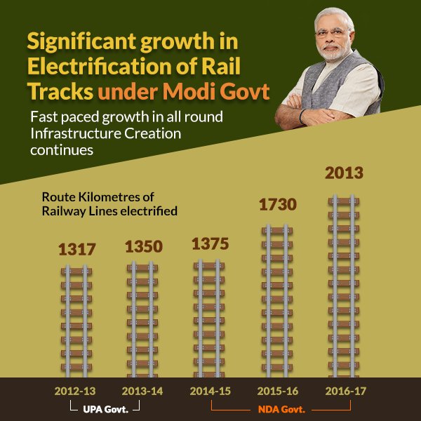 Significant growth in Electrification of Rail Tracks under Modi Govt. http://nm4.in/1gENiTX pic.twitter.com/eWMZ8Nlm1I