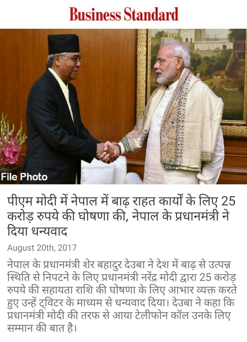 पीएम मोदी में नेपाल में बाढ़ राहत कार्यों के लिए 25 करोड़ रुपये की घोषणा की, नेपाल के प्रधानमंत्री ने दिया धन्यवाद via NMApppic.twitter.com/iElg4BUv44
