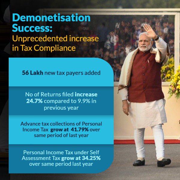 Reducing black money was the main objective of Demonetisation. Whole world watched that we were very successful. #DemonetisationSuccesspic.twitter.com/GMzDVtVxTK