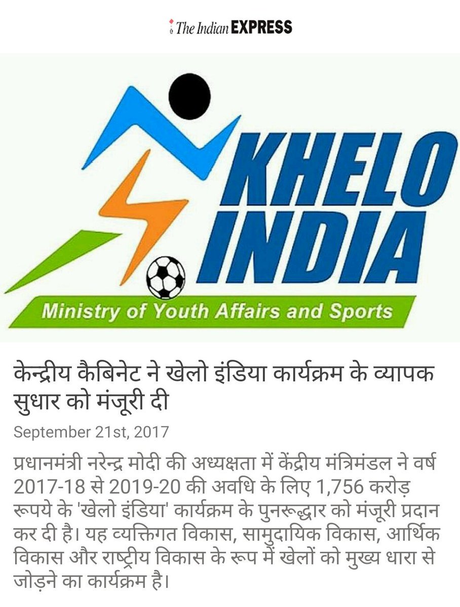 केन्द्रीय कैबिनेट ने खेलो इंडिया कार्यक्रम के व्यापक सुधार को मंजूरी दी http://indianexpress.com/article/sports/sport-others/union-cabinet-approves-revamping-of-khelo-india-program-with-wide-ranging-interventions-4852636/ … via NMApppic.twitter.com/1tOmer4uMW