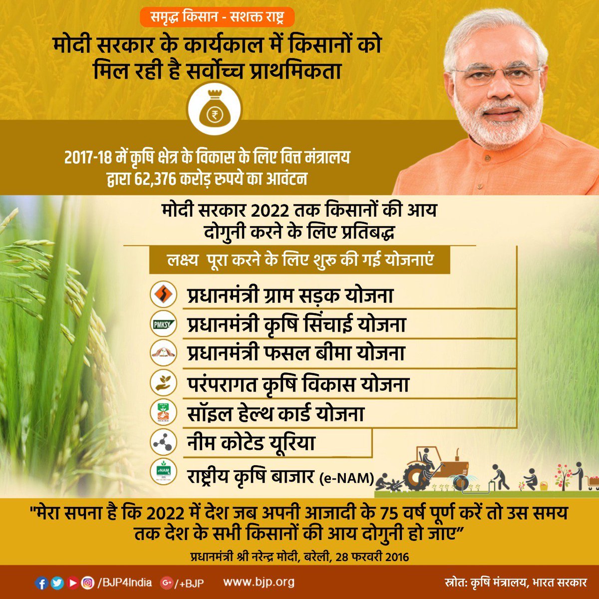 किसानों की आय दोगुनी करने के लिए प्रतिबद्ध मोदी सरकार : वित्त मंत्रालय ने कृषि क्षेत्र के विकास के लिए 62,376 करोड़ रुपये का आवंटन किया।pic.twitter.com/i951dbs4qG