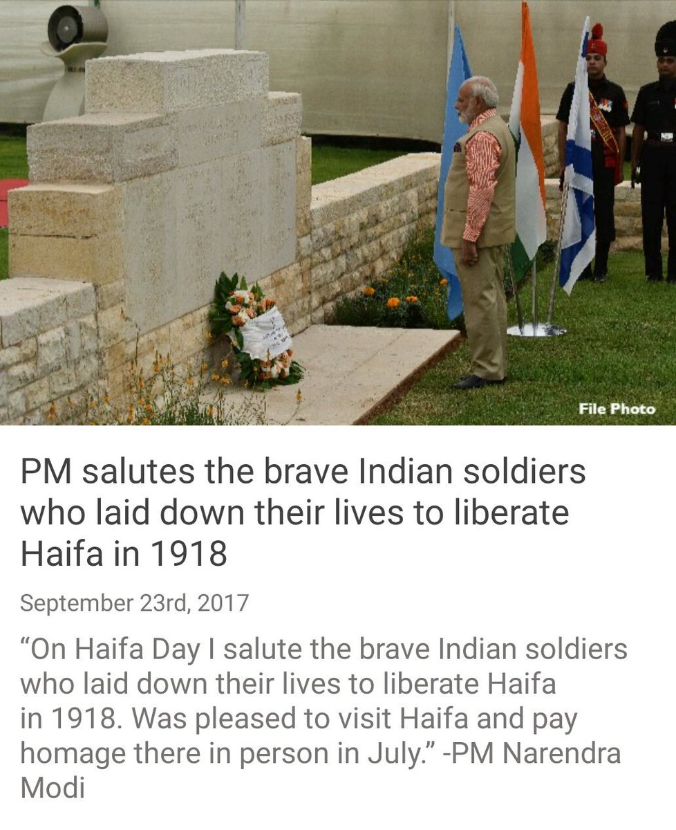 PM salutes the brave Indian soldiers who laid down their lives to liberate Haifa in 1918 http://nm-4.com/5cg5 via NMApppic.twitter.com/7LRIa4HtrX