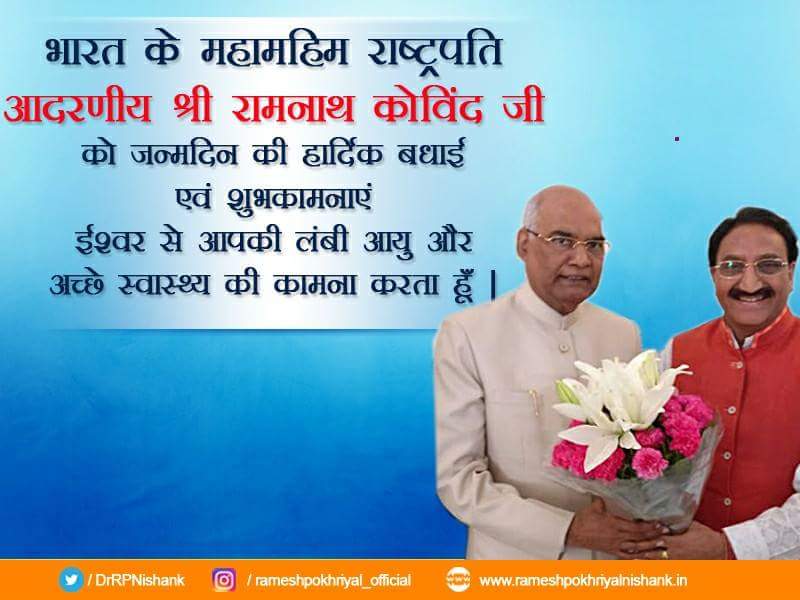 Dr.Ramesh Pokhriyal‏Verified account @DrRPNishank 1 Oct 2017
