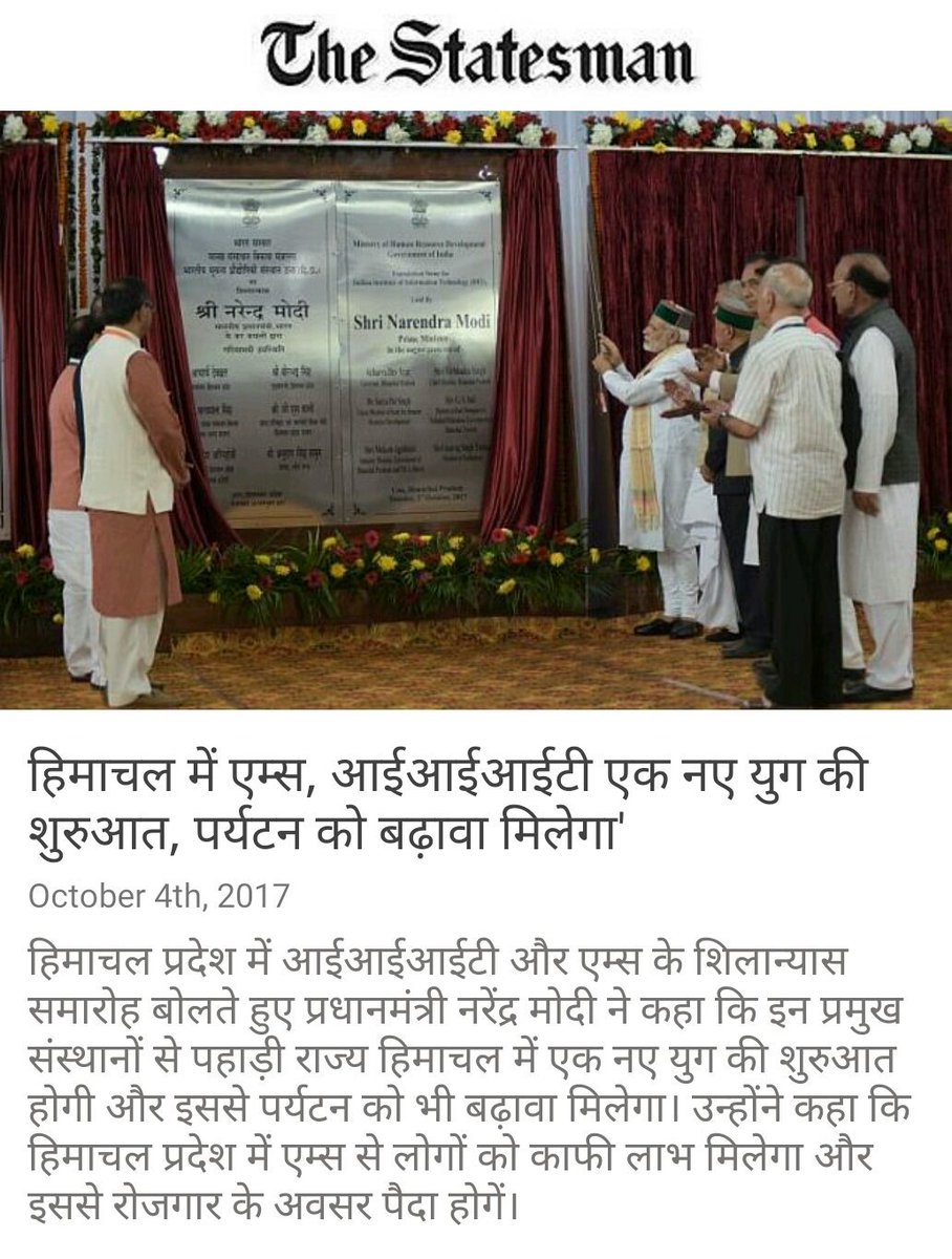 हिमाचल में एम्स, आईआईआईटी एक नए युग की शुरुआत, पर्यटन को बढ़ावा मिलेगा' http://www.thestatesman.com/india/aiims-iiit-himachal-beginning-new-era-will-boost-tourism-1502504369.html … via NMApppic.twitter.com/7MODAKGpQa
