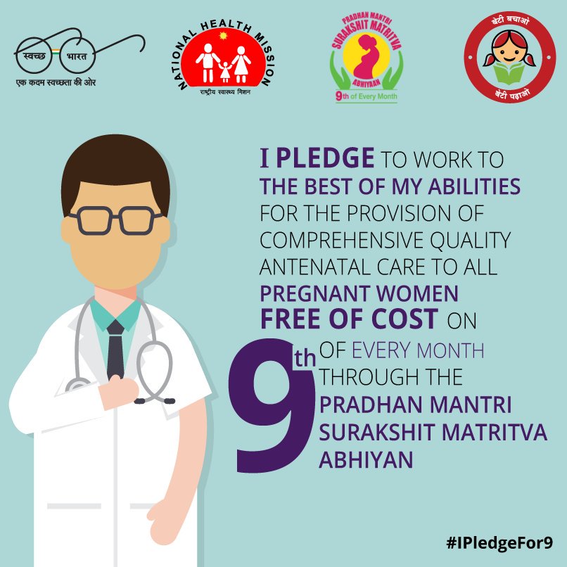 Doctors to ensure #pregnant women have access to comprehensive antenatal & health care facilities on the 9th of every month. #IPledgeFor9pic.twitter.com/gaka2iETVd