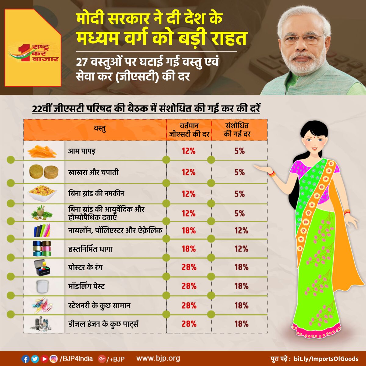 मोदी सरकार ने दी देश के मध्यम वर्ग को बड़ी राहत - 27 वस्तुओं पर घटाई गई जीएसटी की दर।pic.twitter.com/70gHIA8THf