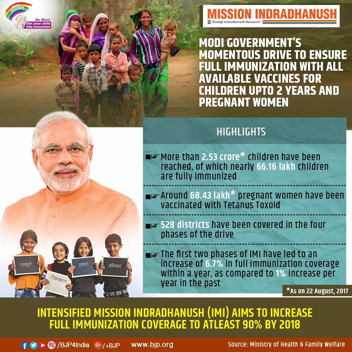 Modi govt’s momentous drive to ensure full immunization with all available vaccines for children up to 2 years and pregnant women.pic.twitter.com/1xf4LzYi4Q
