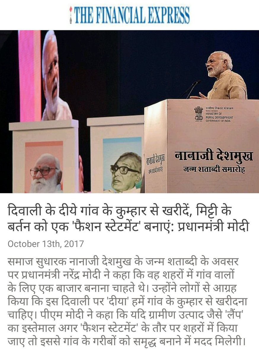 दिवाली के दीये गांव के कुम्हार से खरीदें, मिट्टी के बर्तन को एक 'फैशन स्टेटमेंट' बनाएं: प्रधानमंत्री मोदी http://www.financialexpress.com/india-news/buy-diwali-diyas-from-villages-make-earthen-pots-a-fashion-statement-pm-modi/892214/ … via NMApppic.twitter.com/XPCJJSIyAl