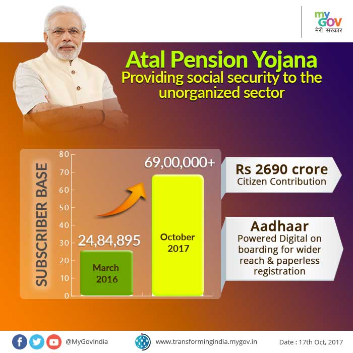 A steep rise in the subscriber base of Atal Pension Yojana; providing social security to the unorganized sectorpic.twitter.com/cVJJWik5gQ