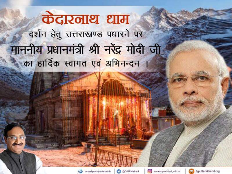 केदारनाथ धाम दर्शन हेतु उत्तराखण्ड पधारने पर माननीय प्रधानमंत्री श्री नरेंद्र मोदी जी का हार्दिक स्वागत एवं अभिनन्दन ।pic.twitter.com/Eghr9QysSq