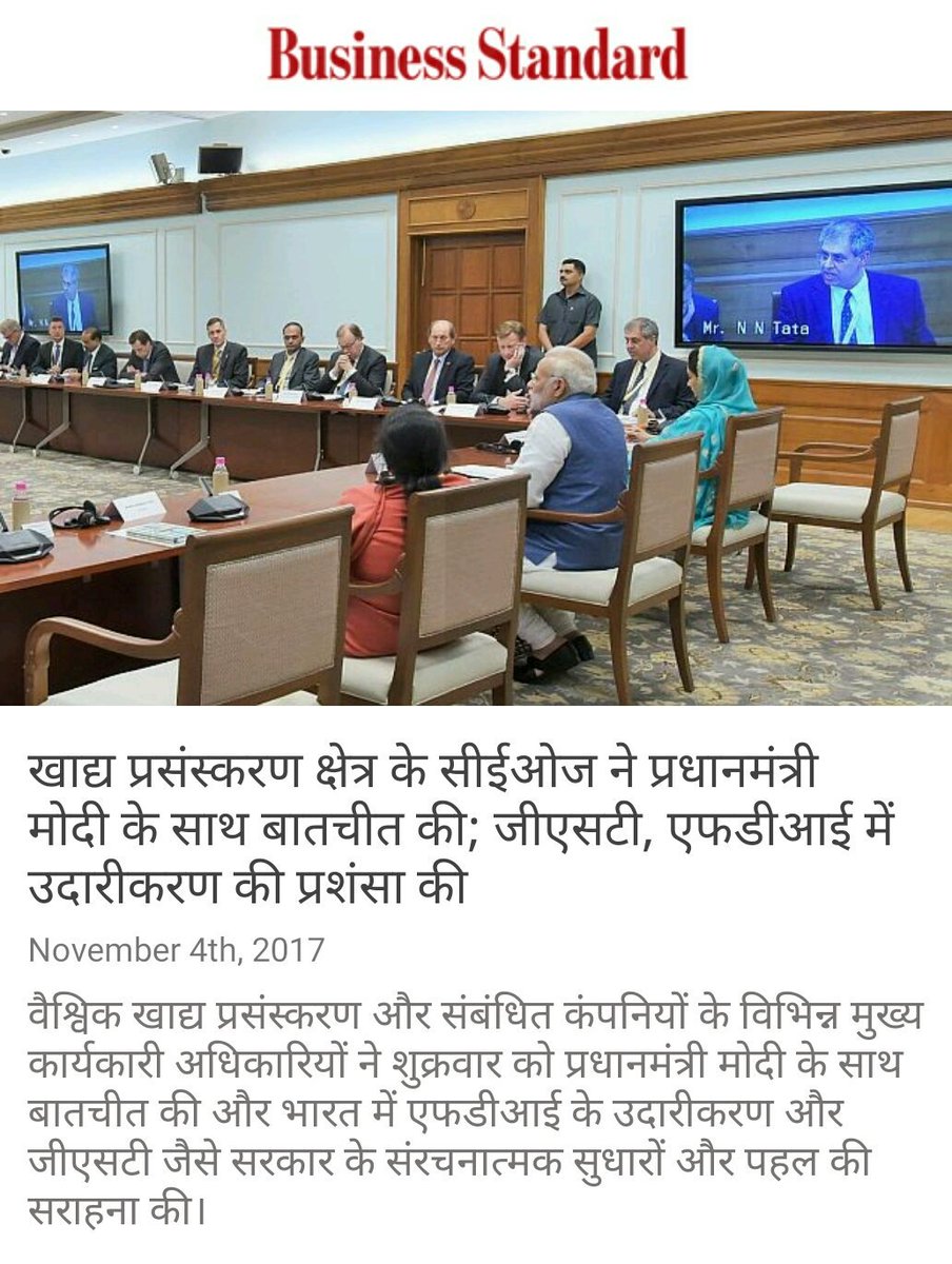 खाद्य प्रसंस्करण क्षेत्र के सीईओज ने प्रधानमंत्री मोदी के साथ बातचीत की; जीएसटी, एफडीआई में उदारीकरण की प्रशंसा कीpic.twitter.com/0u69o2xAbE