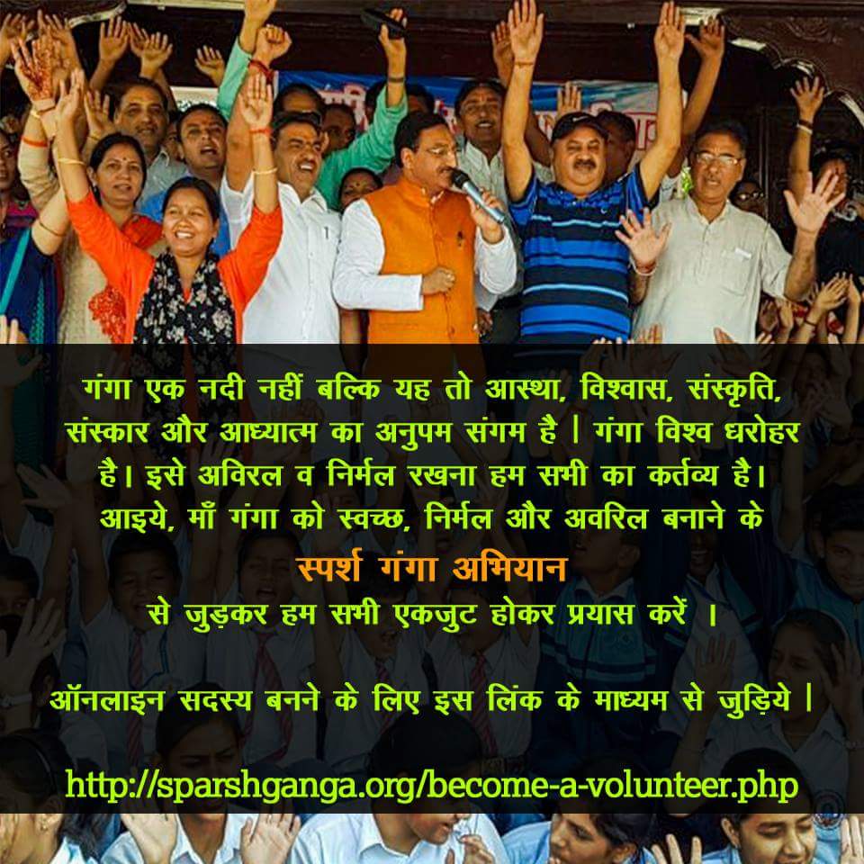गंगा विश्व धरोहर है। इसे अविरल व निर्मल रखना हम सभी का कर्तव्य है। आइये, माँ गंगा को स्वच्छ, निर्मल और अवरिल बनाने के स्पर्श गंगा अभियान से जुड़कर हम सभी एकजुट होकर प्रयास करें । ऑनलाइन सदस्य बनने के लिए इस लिंक के माध्यम से जुड़िये | http://sparshganga.org/become-a-volunteer.php …pic.twitter.com/guVtO9aF9X