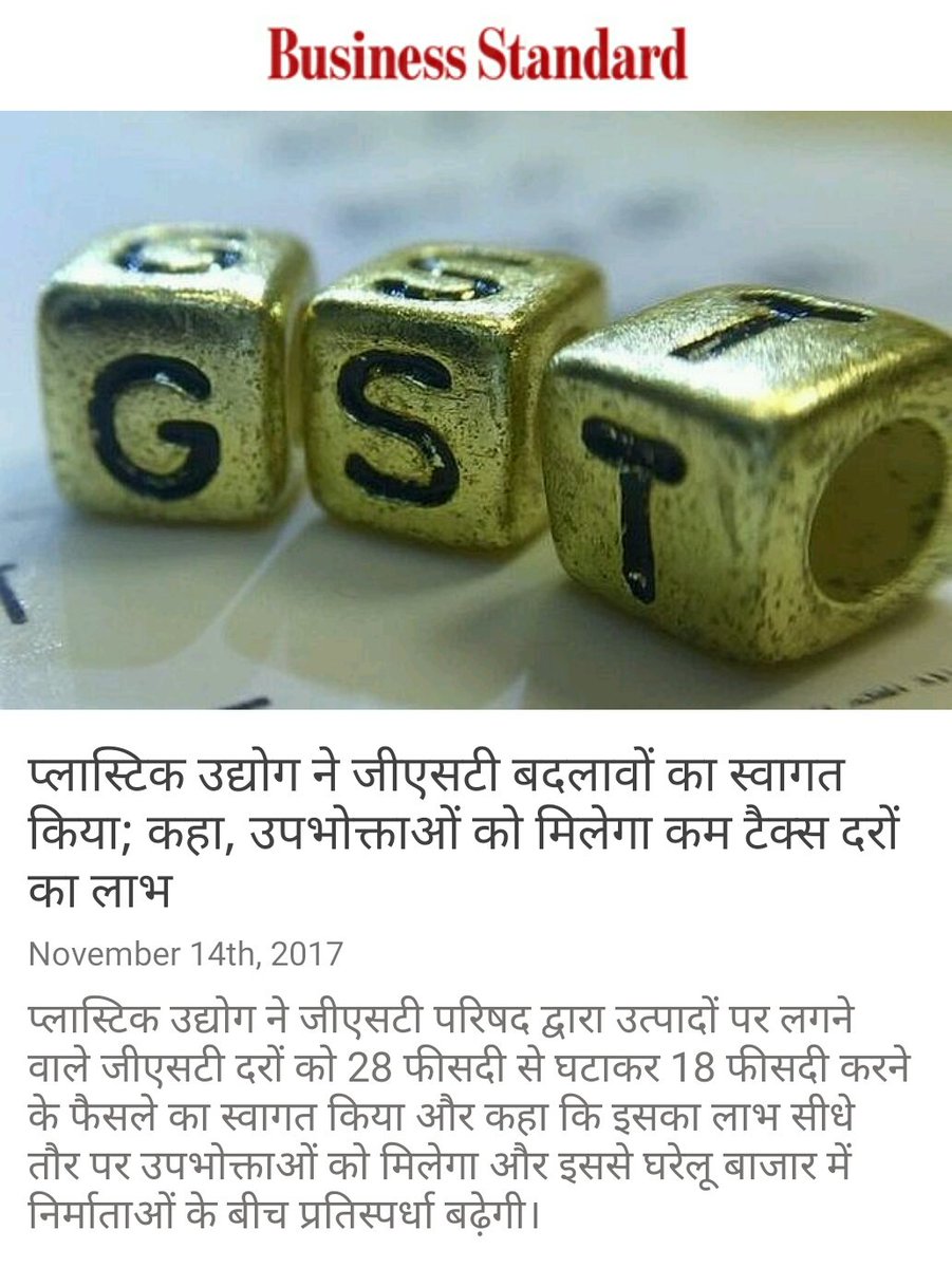 प्लास्टिक उद्योग ने जीएसटी बदलावों का स्वागत किया; कहा, उपभोक्ताओं को मिलेगा कम टैक्स दरों का लाभ http://www.business-standard.com/article/economy-policy/plastics-industry-hails-gst-rejig-says-lower-taxes-will-benefit-consumers-117111301145_1.html … via NMApppic.twitter.com/dc1oaQUOBi