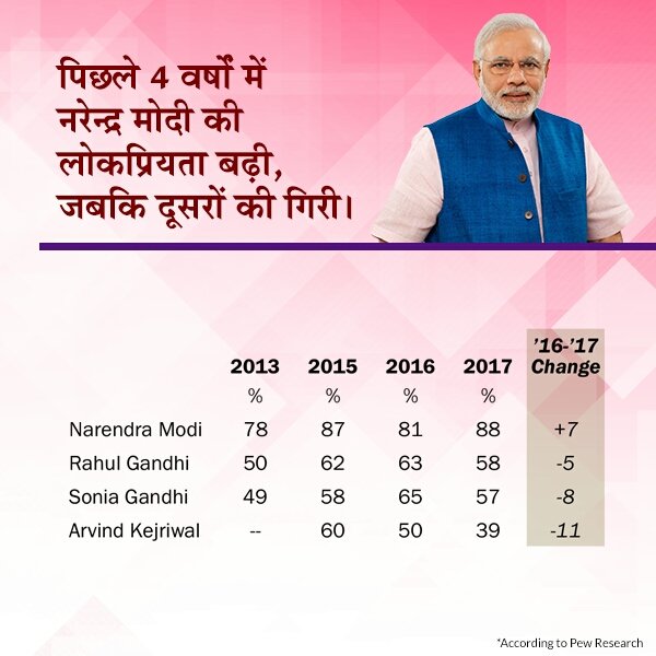 पिछले 4 वर्षों में नरेन्द्र मोदी की लोकप्रियता बढ़ी, जबकि दूसरों की गिरी। via NMApppic.twitter.com/hEoe9S73bS