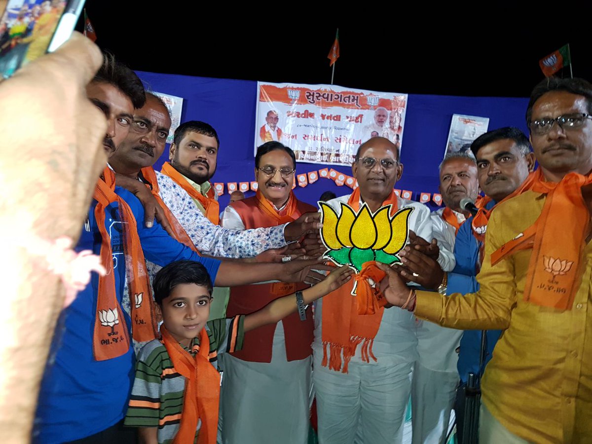गुजरात 150 + के लक्ष्य को प्राप्त करने के लिए सभी कार्यकर्ताओं ने संकल्प लिया साथ ही सभी ने हाथ खड़े कर अपने बूथ को कान्ग्रेस मुक्त कमल युक्त बनाने संकल्प लिया ।pic.twitter.com/Dlgdztc3oU