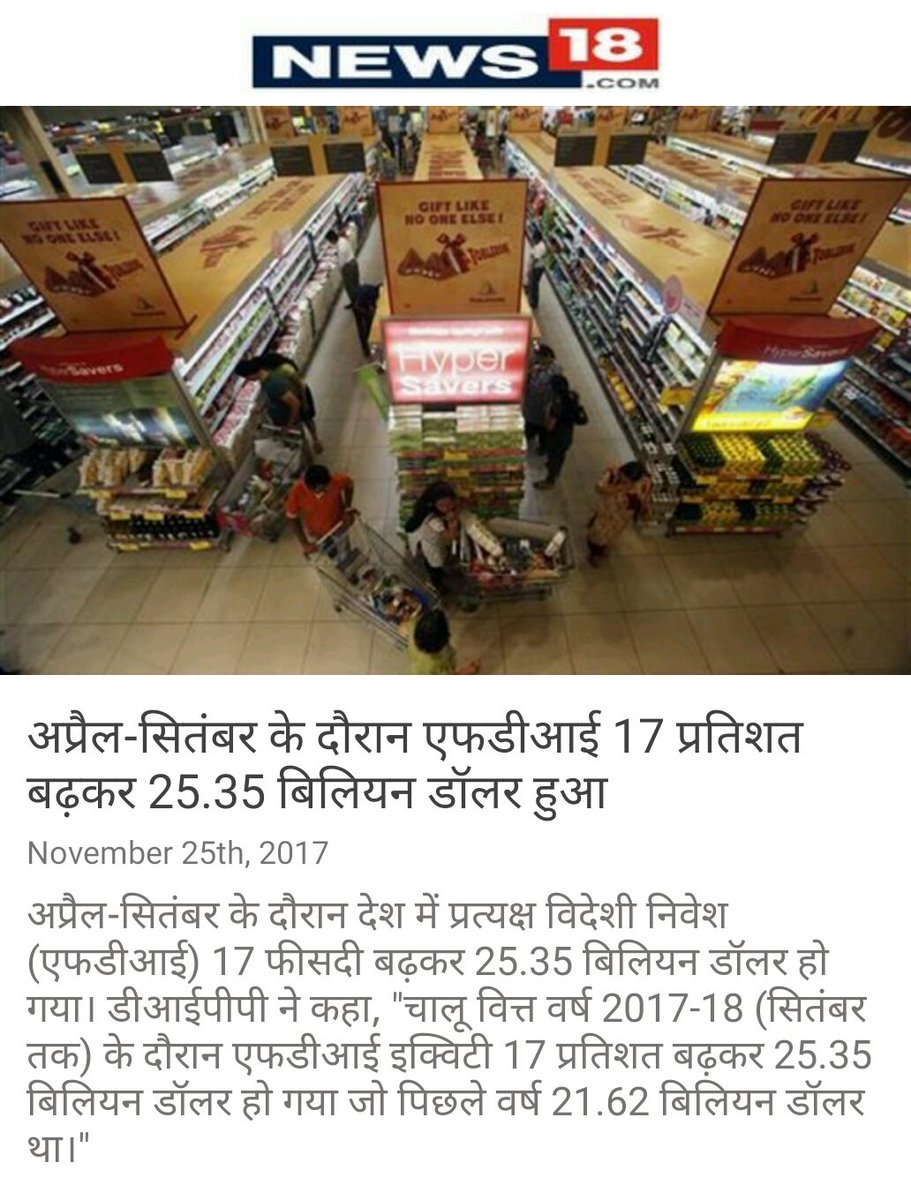 अप्रैल-सितंबर के दौरान एफडीआई 17 प्रतिशत बढ़कर 25.35 बिलियन डॉलर हुआ http://www.news18.com/news/business/fdi-up-17-per-cent-to-25-35-billion-during-april-september-this-fiscal-1586739.html … via NMApppic.twitter.com/0oe44IjdxK