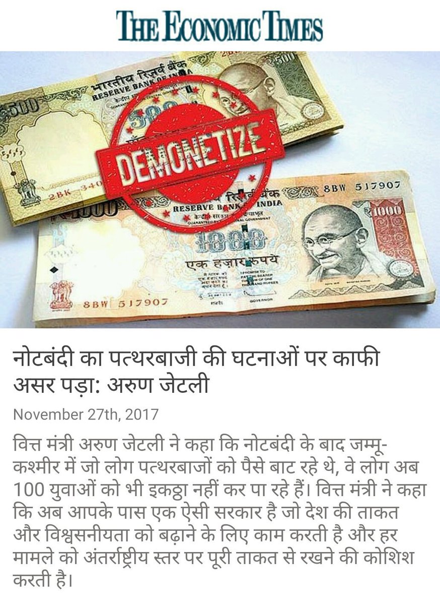 नोटबंदी का पत्थरबाजी की घटनाओं पर काफी असर पड़ा: अरुण जेटली https://economictimes.indiatimes.com/news/politics-and-nation/note-ban-had-major-impact-on-stone-pelting-incidents-arun-jaitley/articleshow/61809544.cms … via NMApppic.twitter.com/pVCxxpNSzW