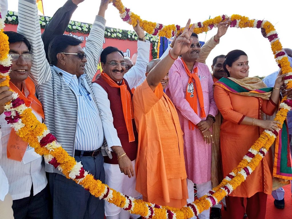 गुजरात, जामनगर ग्रामीण विधानसभा की ठेबा क्षेत्र में उत्तर प्रदेश के मुख्यमंत्री आदरणीय @myogiadityanath जी के साथ जनसभा को संबोधित किया । 1/2pic.twitter.com/9avJ6TAF0U