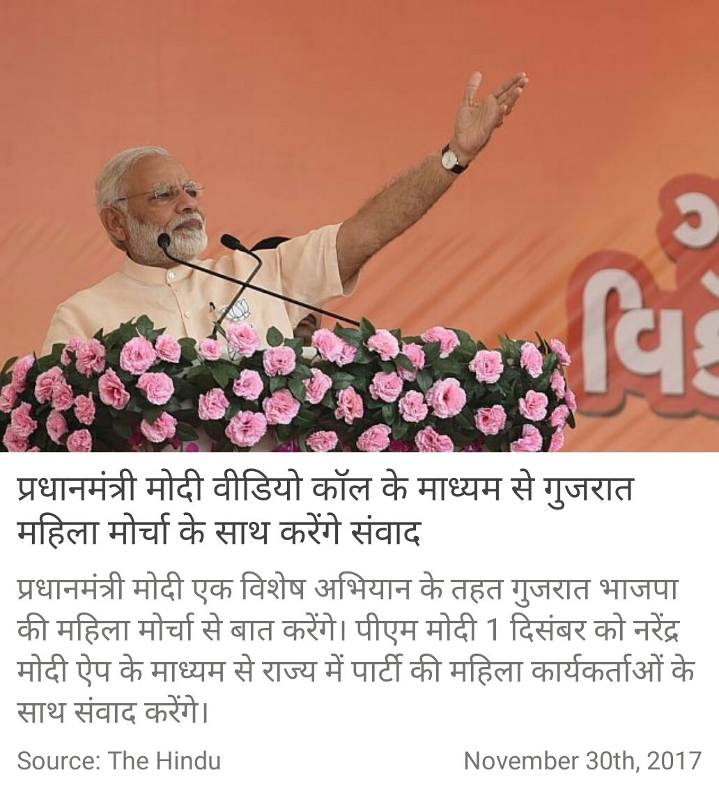 प्रधानमंत्री मोदी वीडियो कॉल के माध्यम से गुजरात महिला मोर्चा के साथ करेंगे संवाद http://www.thehindu.com/elections/gujarat-2017/narendra-modi-to-reach-out-to-mahila-morcha-via-mass-video-call/article21202712.ece … via NMApppic.twitter.com/F6uAaufKgu