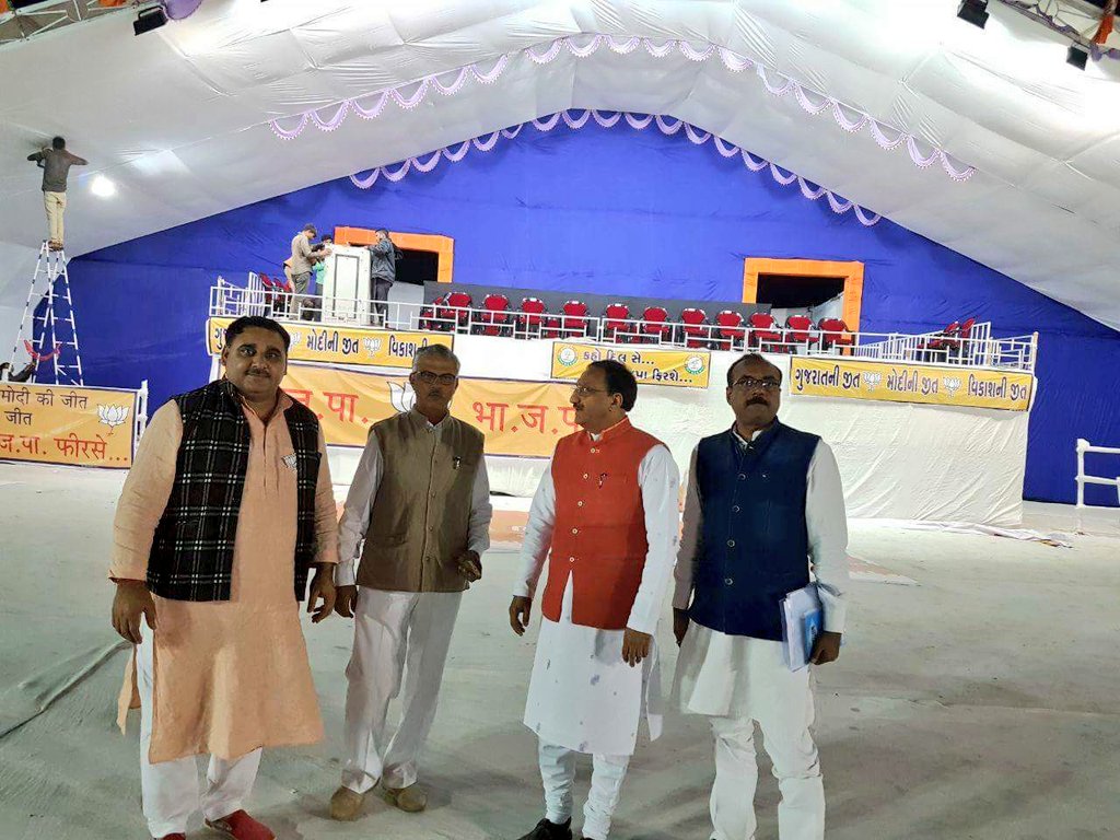 कल देर रात्रि गुजरात जामनगर में यशस्वी प्रधानमंत्री श्री नरेंद्र मोदी जी की आज होने वाली जनसभा के सभास्थल ( प्रदर्शनी ग्राउंड) की तैयारियों का जायजा लिया ।pic.twitter.com/83HHptNA38