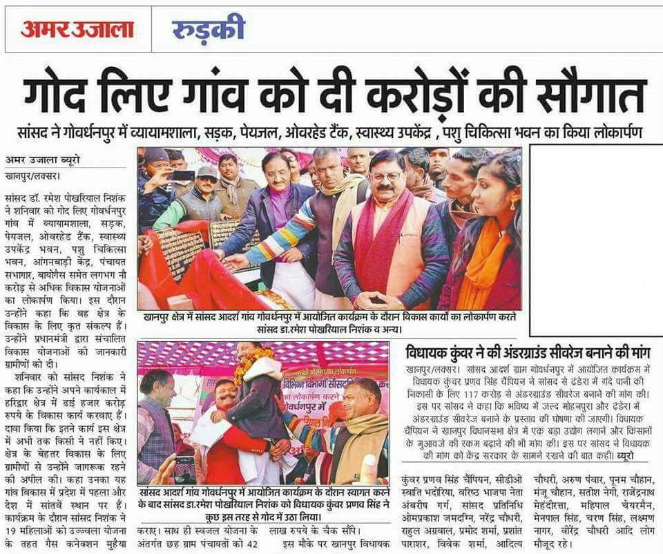 सांसद आदर्श ग्राम योजना के तहत देश भर में चयनित करीब साढ़े पांच सौ गाँवों में गौवर्धनपुर गाँव सातवें स्थान पर तथा प्रदेश में पहले स्थान पर है।pic.twitter.com/XHgJKrqtnH