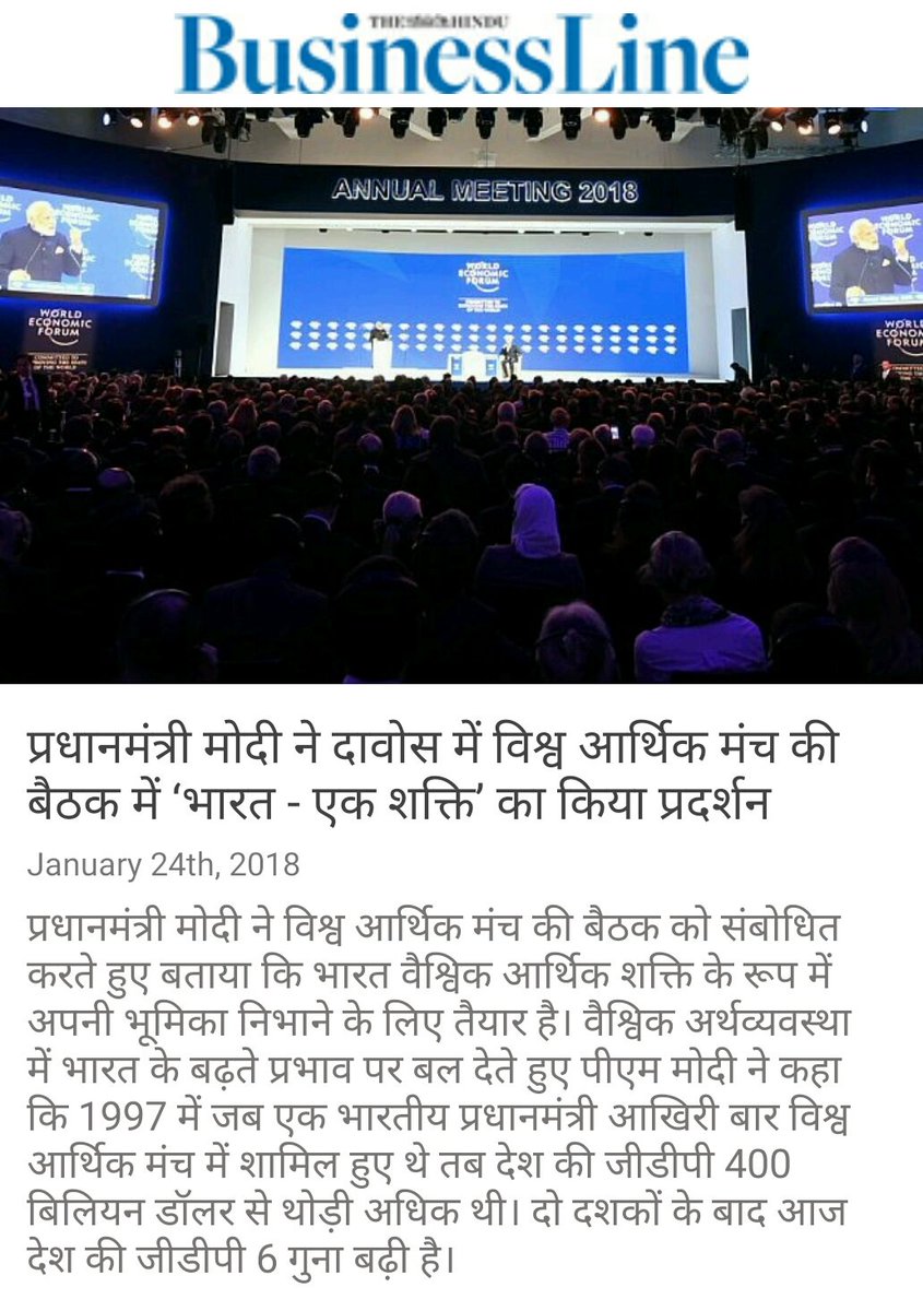 प्रधानमंत्री मोदी ने दावोस में विश्व आर्थिक मंच की बैठक में ‘भारत - एक शक्ति’ का किया प्रदर्शन http://www.thehindubusinessline.com/news/protectionism-is-hurting-globalisation-modi/article10048289.ece … via NMApppic.twitter.com/DmyLMP3Ah8