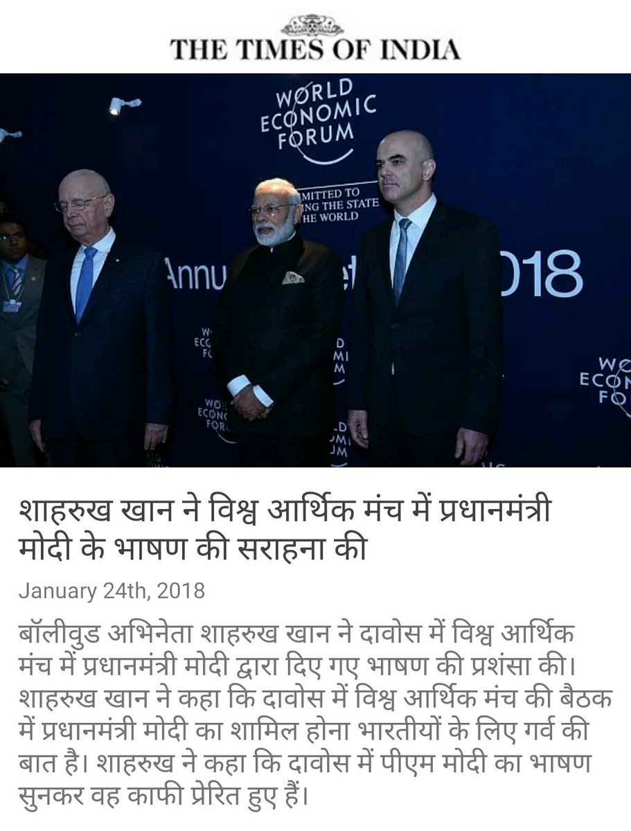 शाहरुख खान ने विश्व आर्थिक मंच में प्रधानमंत्री मोदी के भाषण की सराहना की https://timesofindia.indiatimes.com/entertainment/hindi/bollywood/news/shah-rukh-khan-feels-inspired-by-prime-minister-narendra-modis-speech-at-wec/articleshow/62626970.cms … via NMApppic.twitter.com/TxHyI0s7e6
