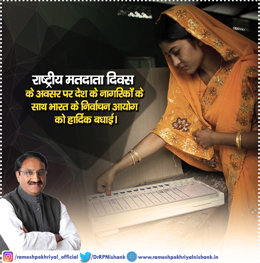 राष्‍ट्रीय मतदाता दिवस के अवसर पर देश के नागरिकों के साथ भारत के निर्वाचन आयोग को हार्दिक बधाई। #NationalVotersDaypic.twitter.com/aLHshBshvM