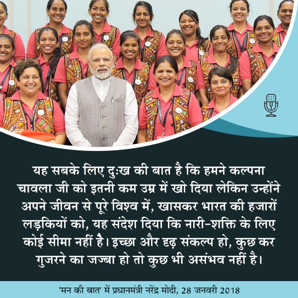 Kalpana Chawla inspired women all over the world : PM Shri @narendramodi - Listen at https://www.facebook.com/BJP4India/videos/2009567552417091/ … #MannKiBaatpic.twitter.com/hnsWfJUx3T