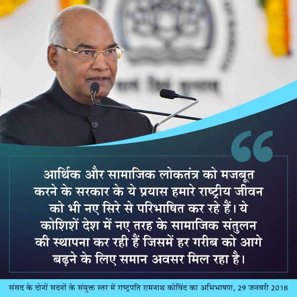 आर्थिक और सामाजिक लोकतंत्र को मजबूत करने के सरकार के प्रयास हमारे राष्ट्रीय जीवन को भी नए सिरे से परिभाषित कर रहे हैं : महामहिम राष्ट्रपति श्री कोविंद जी ।pic.twitter.com/8qJnaoroXG