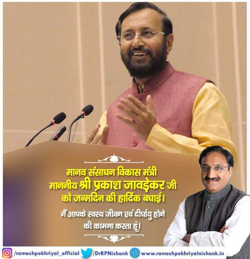 मानव संसाधन विकास मंत्री माननीय श्री @PrakashJavdekar जी को जन्मदिन की हार्दिक बधाई । मैं आपके स्वस्थ जीवन एवं दीर्घायु होने की कामना करता हूँ।pic.twitter.com/3KcYEEYsN1