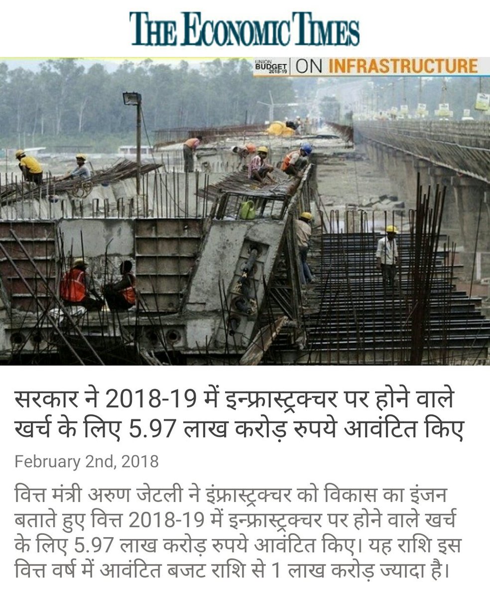 सरकार ने 2018-19 में इन्फ्रास्ट्रक्चर पर होने वाले खर्च के लिए 5.97 लाख करोड़ रुपये आवंटित किए https://economictimes.indiatimes.com/news/economy/infrastructure/government-allocates-rs-5-97-lakh-crore-for-infra-spending-in-2018-19/articleshow/62740220.cms … via NMApppic.twitter.com/kbgP38aPUY