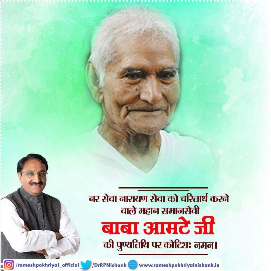 नर सेवा नारायण सेवा को चरितार्थ करने वाले महान समाजसेवी आदरणीय बाबा आमटे जी की पुण्यतिथि पर कोटिशः नमन ।pic.twitter.com/wrptYWaOhA