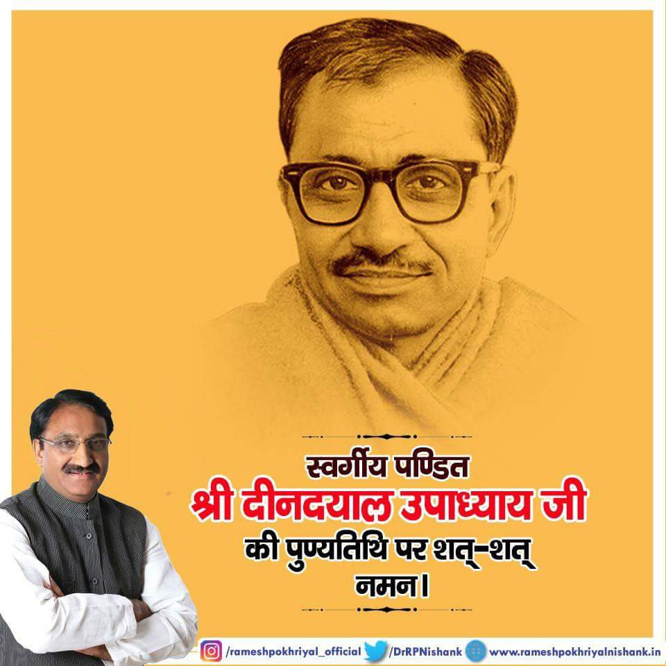 भारतीय जनसंघ के संस्थापक, हमारे पथ प्रदर्शक, प्रखर राष्ट्रवादी, उत्कृष्ट संगठनकर्ता, एकात्म मानववाद के प्रणेता पंडित दीनदयाल उपाध्याय जी की पुण्यतिथि पर शत्-शत् नमन।pic.twitter.com/kYssvFpy6K