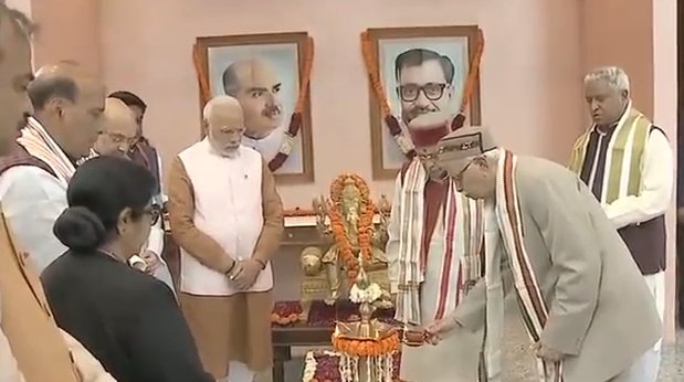 PM Shri @narendramodi, BJP National President Shri @AmitShah, Shri LK Advani ji, Dr Murli Manohar Joshi ji and other senior leaders at BJP's new headquarters at Deen Dayal Upadhyaya Marg, Delhi. https://www.facebook.com/BJP4India/videos/2040391806001332/ …pic.twitter.com/8Uw4lV8TBS