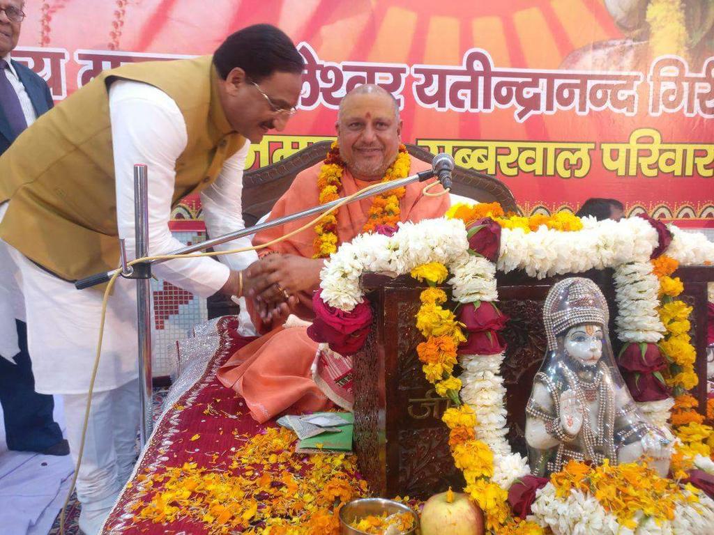 आज रुड़की में पूज्य महामंडलेश्वर यतीन्द्रानन्द गिरी जी महाराज से हनुमंत कथा सुनने का सौभाग्य प्राप्त हुआ। हम सभी को प्रभु हनुमान जी के जीवन से प्रेरणा लेते हुए धर्म के पथ पर चलना चाहिए।pic.twitter.com/UfXdUAERet