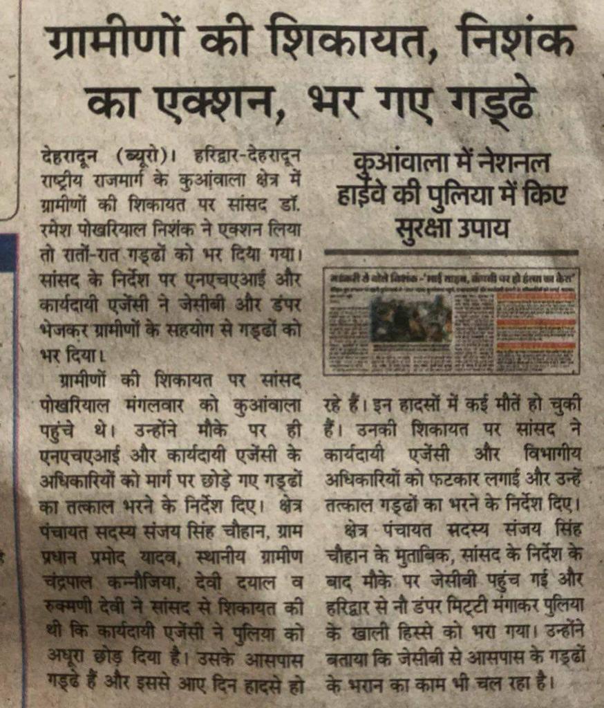 मुझे ख़ुशी है कि एनएच व एनएचएआई और संबंधित अधिकारियों ने कुँवावाला में तय समय पर कार्य पूरा किया । मैं आशा करता हूँ ऐसी ही तत्परता अन्य विभाग भी दिखाएँ ताकि आम जनता की दिक्कतें दूर हो सके ।pic.twitter.com/7WEFSiYH1s