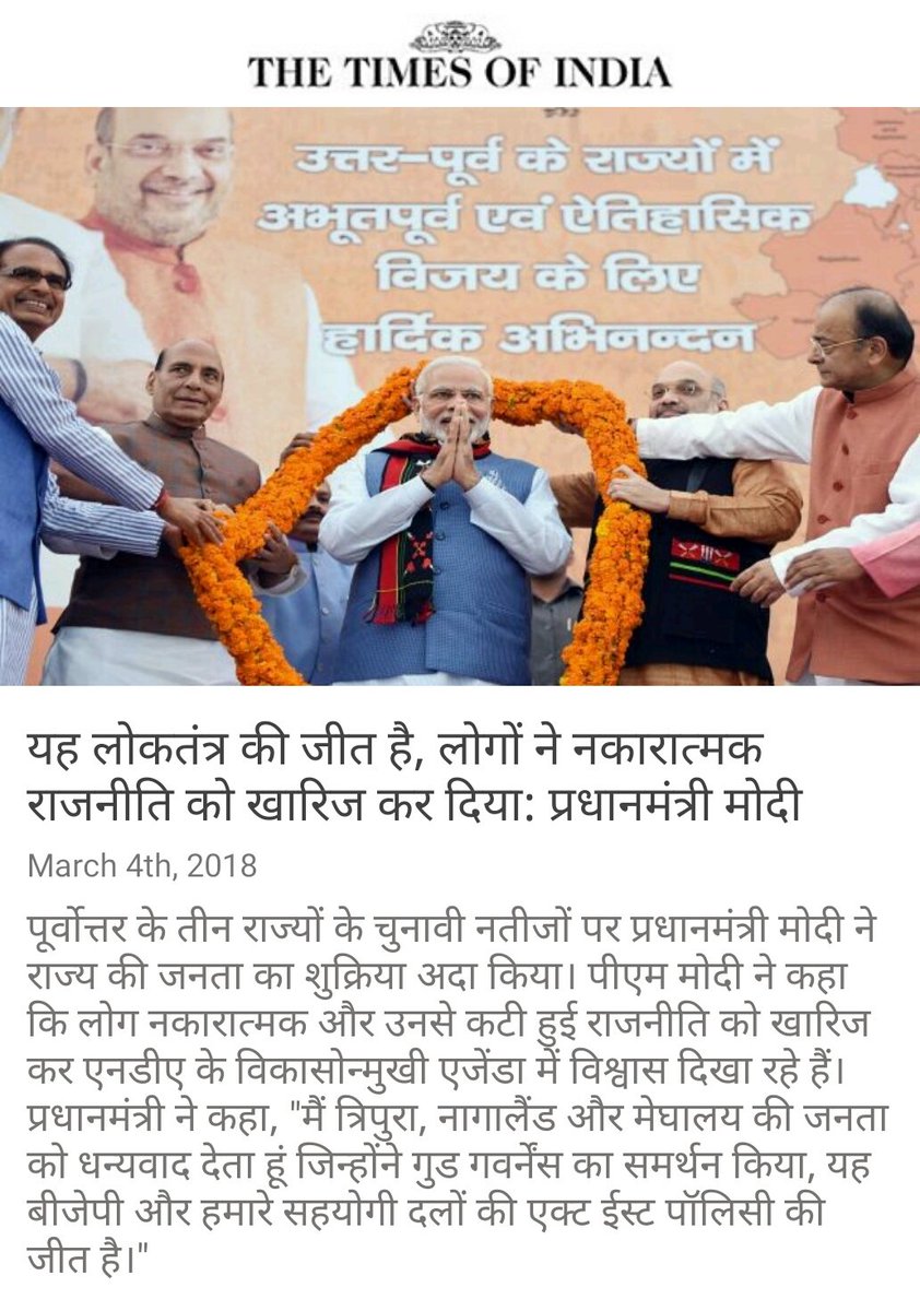 यह लोकतंत्र की जीत है, लोगों ने नकारात्मक राजनीति को खारिज कर दिया: प्रधानमंत्री मोदी https://timesofindia.indiatimes.com/india/people-have-rejected-negative-and-disruptive-politics-pm-narendra-modi-on-assembly-election-results/articleshow/63147100.cms … via NMApppic.twitter.com/hZeNk6F0f0