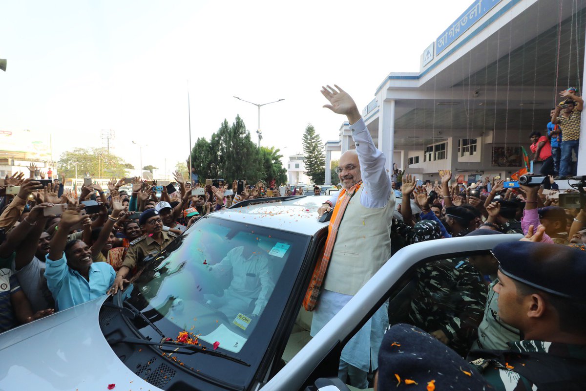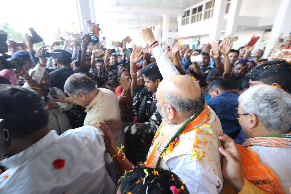 Glimpses of BJP National President Shri @AmitShah's rousing reception on his arrival at Agartala airport in Tripura.pic.twitter.com/AVJ6ZfWuqu