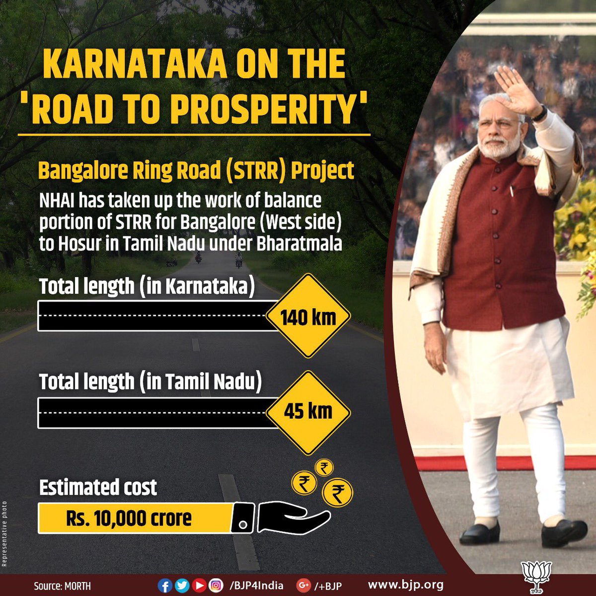 Karnataka on the road to prosperity : Bangalore Ring Road (STRR) Project approved at an estimated cost of Rs. 10,000 crore. pic.twitter.com/rUYWSwTos0pic.twitter.com/zQZoWHtKxW