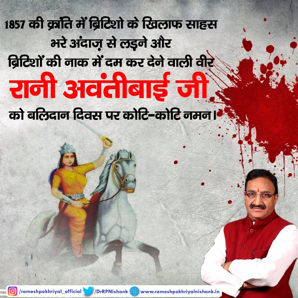 1857 की क्रांति में ब्रिटिशो के खिलाफ साहस भरे अंदाज़ से लड़ने और ब्रिटिशों की नाक में दम कर देने वाली वीर रानी अवंतीबाई जी को बलिदान दिवस पर कोटि-कोटि नमन।pic.twitter.com/D3xVWRkuBv