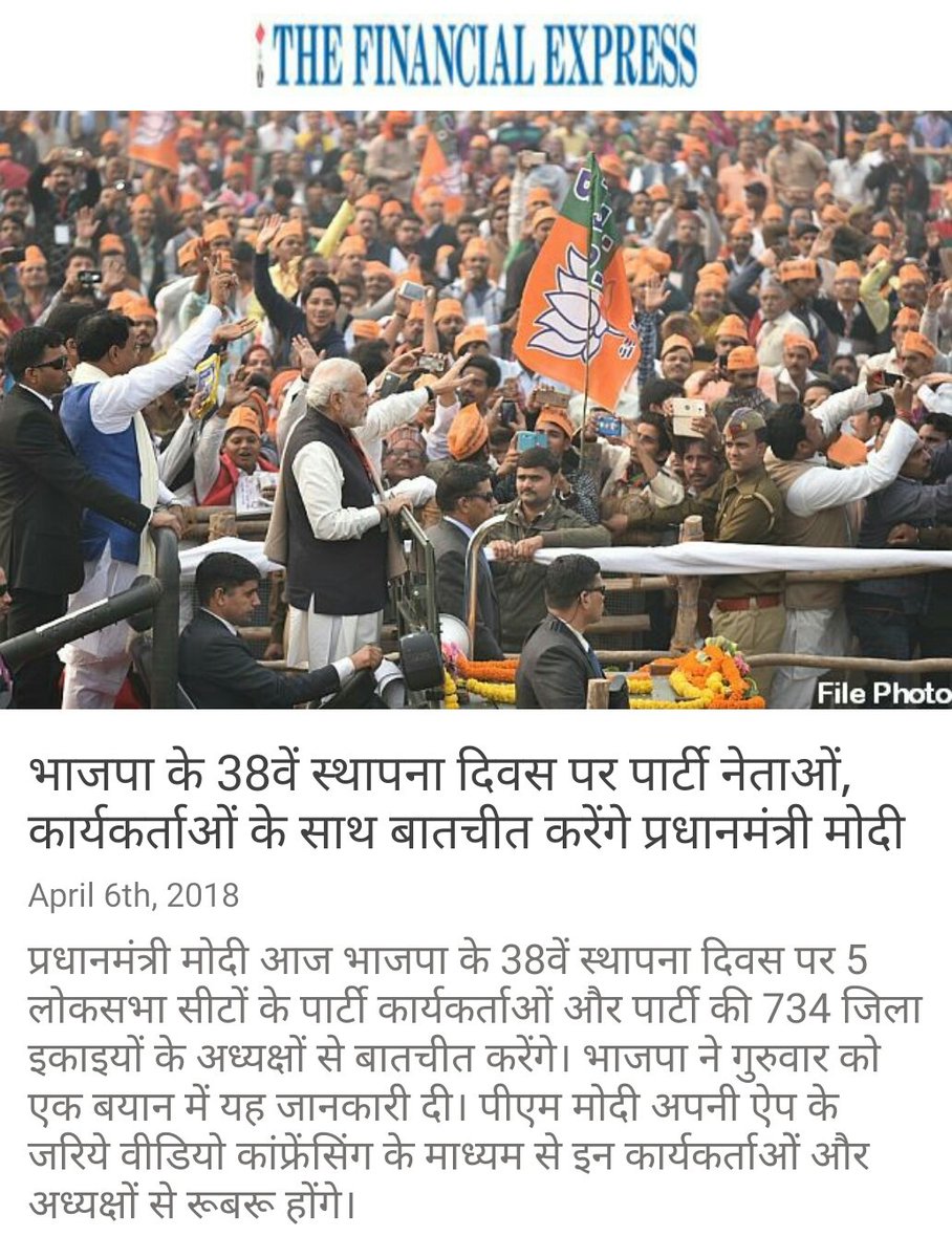 भाजपा के 38वें स्थापना दिवस पर पार्टी नेताओं, कार्यकर्ताओं के साथ बातचीत करेंगे प्रधानमंत्री मोदी http://www.financialexpress.com/india-news/pm-narendra-modi-to-interact-with-bjp-leaders-workers-on-partys-c/1123046/ … via NMApppic.twitter.com/dqAggrNw3J