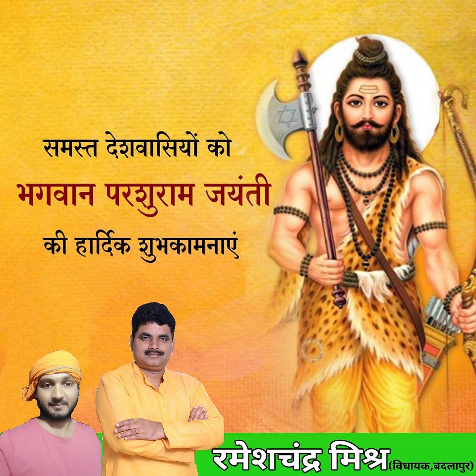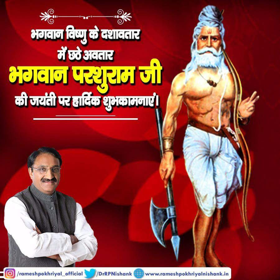 भगवान विष्णु के दशावतार में छठे अवतार भगवान परशुराम जी की जयंती पर हार्दिक शुभकामनाएं ।pic.twitter.com/2nqtHOaYy7