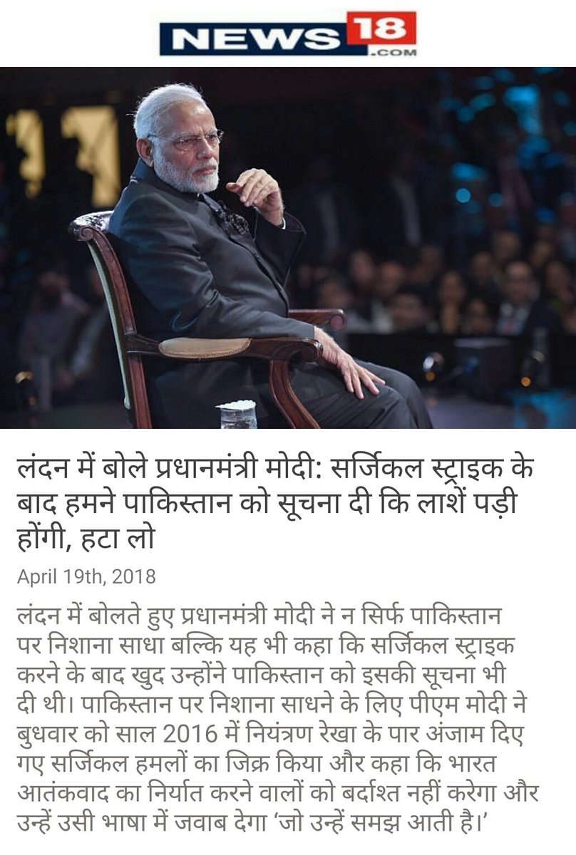 लंदन में बोले प्रधानमंत्री मोदी: सर्जिकल स्ट्राइक के बाद हमने पाकिस्तान को सूचना दी कि लाशें पड़ी होंगी, हटा लो https://www.news18.com/news/india/wont-tolerate-terrorism-i-know-how-to-pay-back-in-same-coin-pm-modi-on-surgical-strikes-1722567.html?ref=m_hp_top_pos_6 … via NMApppic.twitter.com/dOE7w8ueSz
